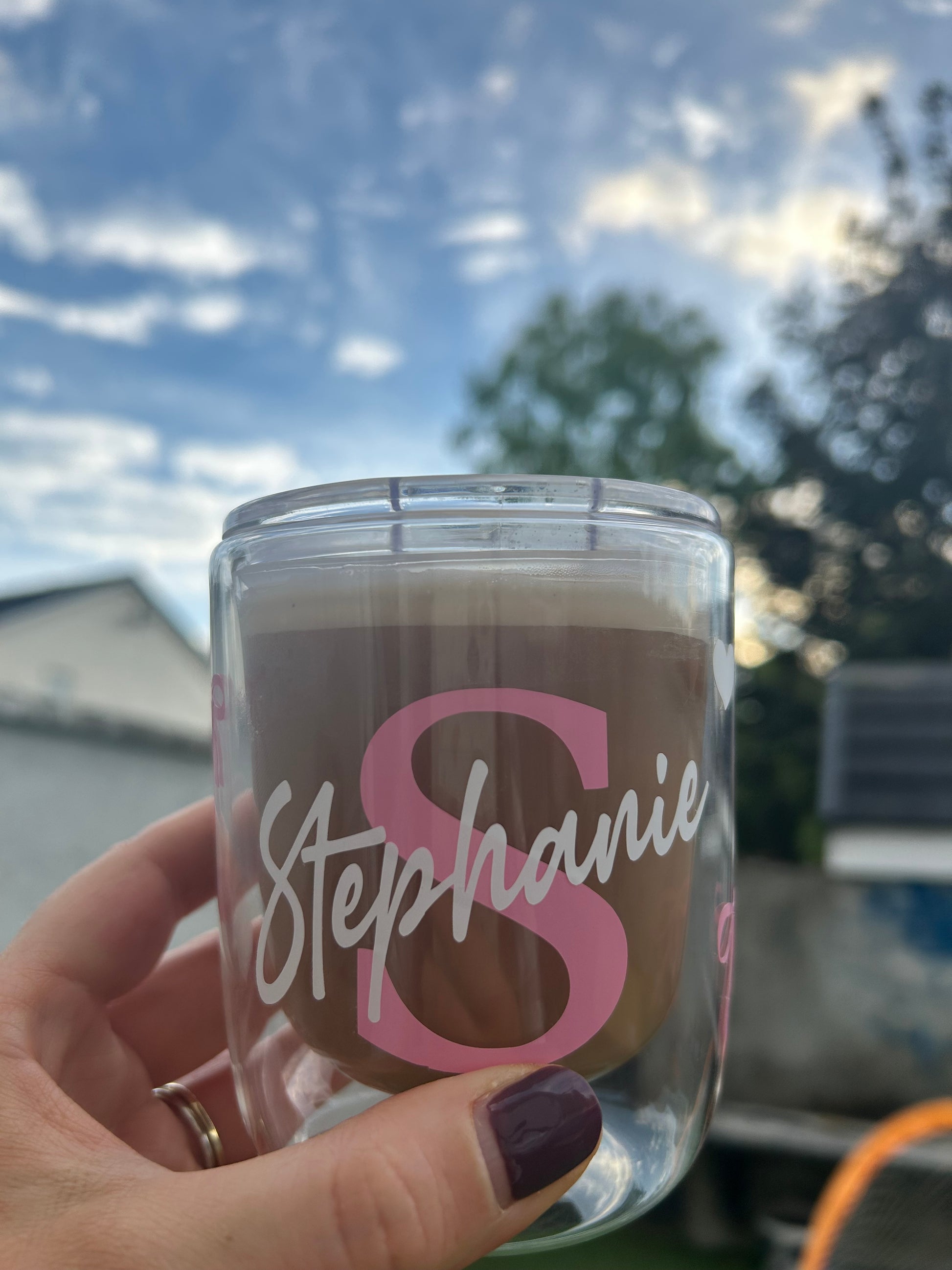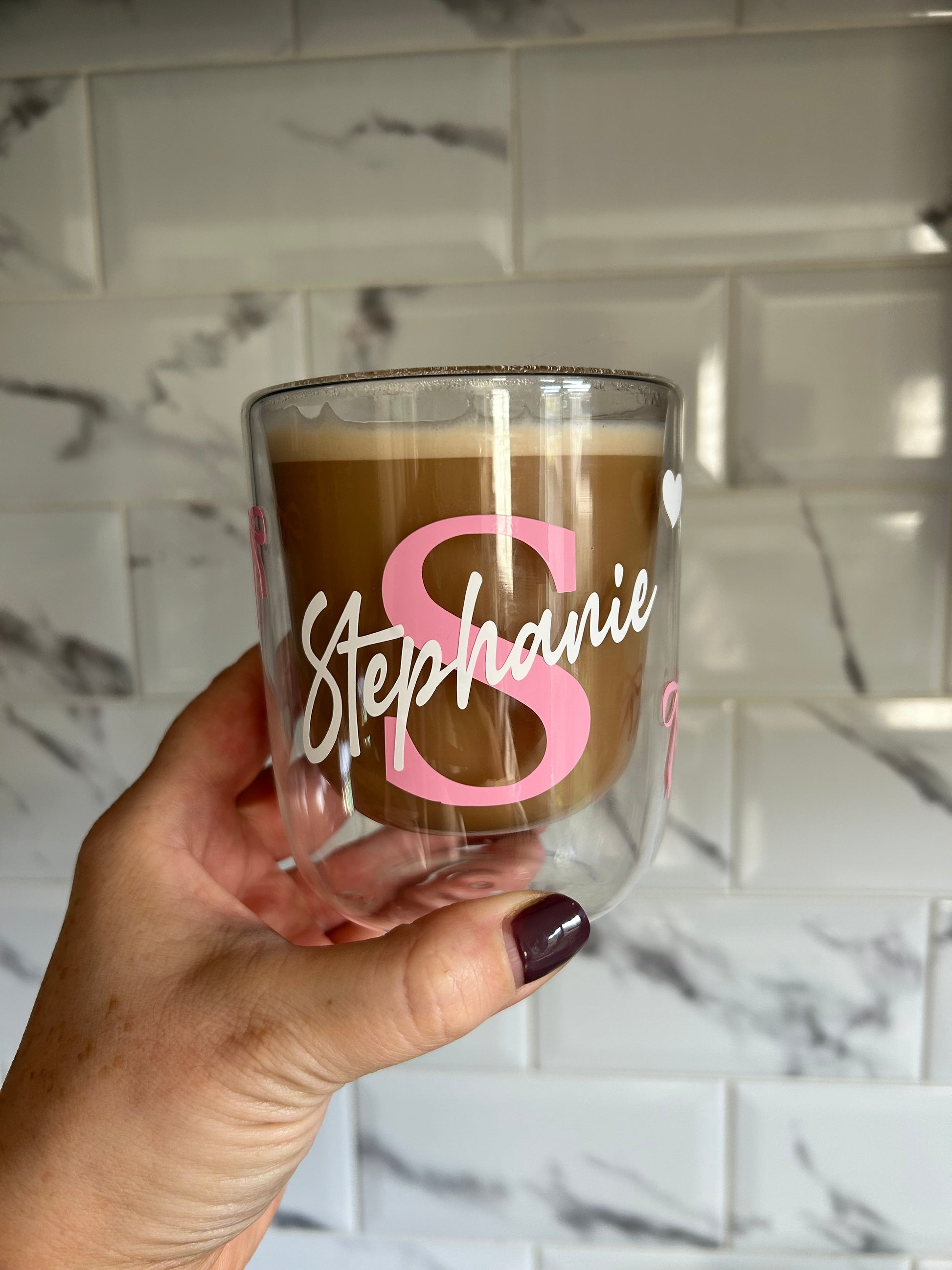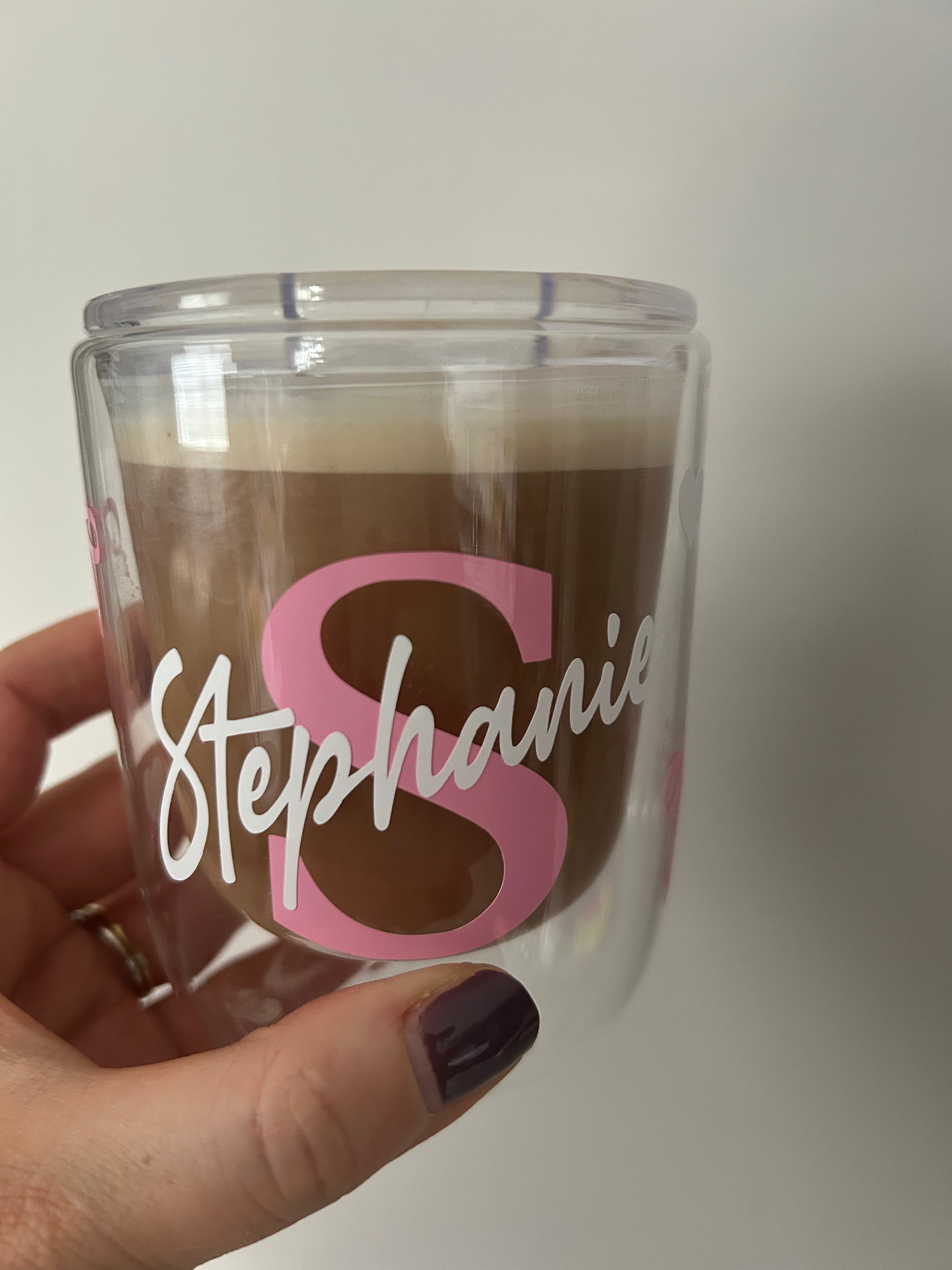 Introducing our Double Walled Pink Bow Cup with Lid, perfect for coffee and tea lovers. The double walled design keeps your hot drinks warmer for longer, and the insulated lid adds even more insulation. The cute bow and heart design, personalized just for you, adds a touch of charm to your daily coffee routine. Stay warm and stylish with our new cup.