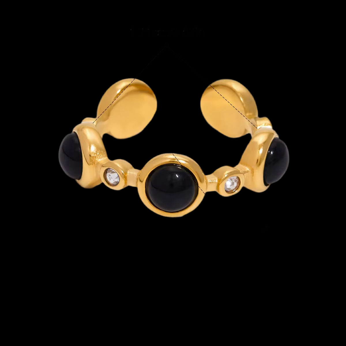 Upgrade your accessory game with our Ebony Adjustable Ring. Made with high-quality 18k gold plated stainless steel, this durable open ring is adorned with sparkling crystal rhinestones. Its adjustable feature allows for a perfect fit every time. Elevate any outfit with this elegant and versatile piece.